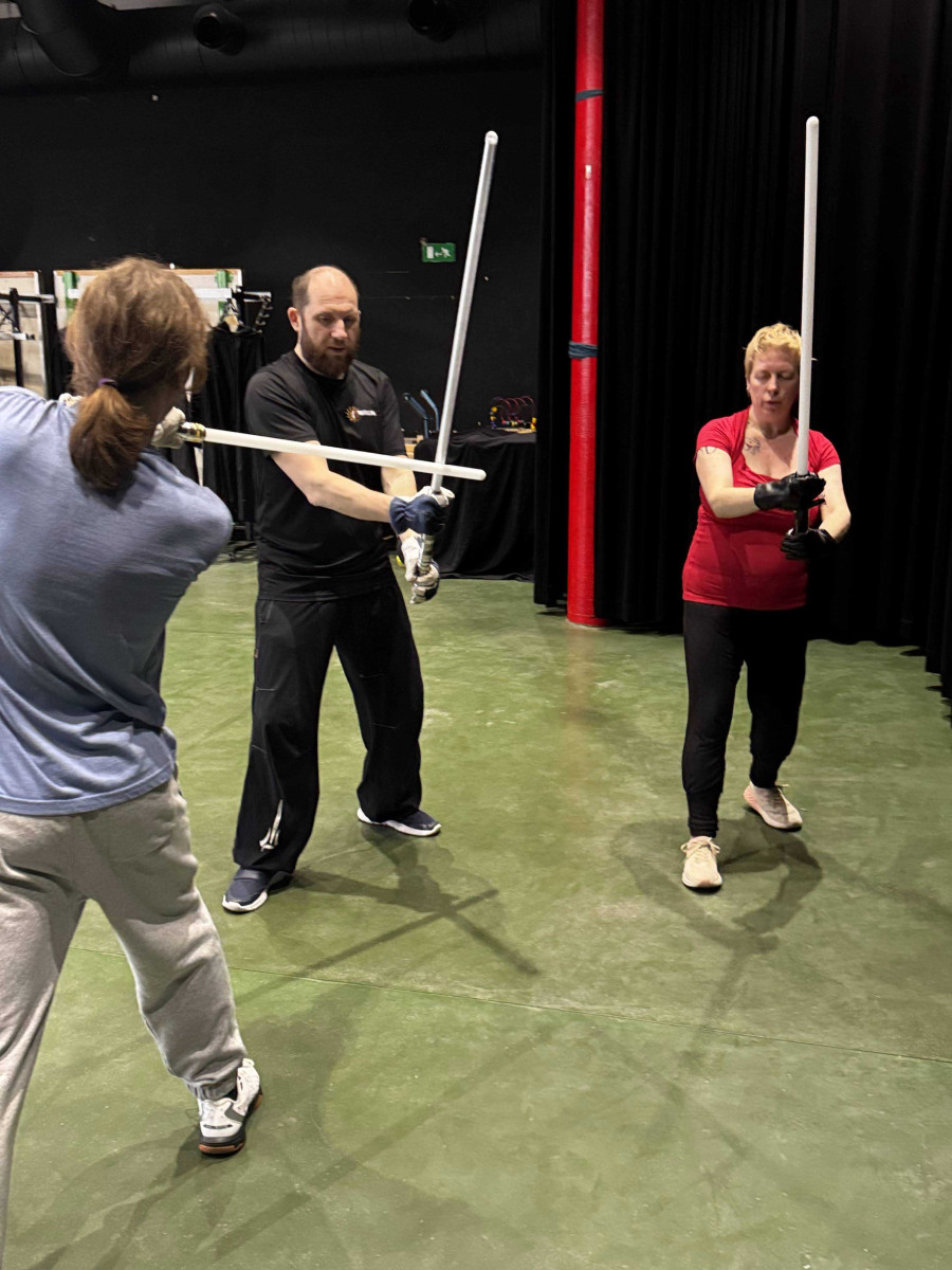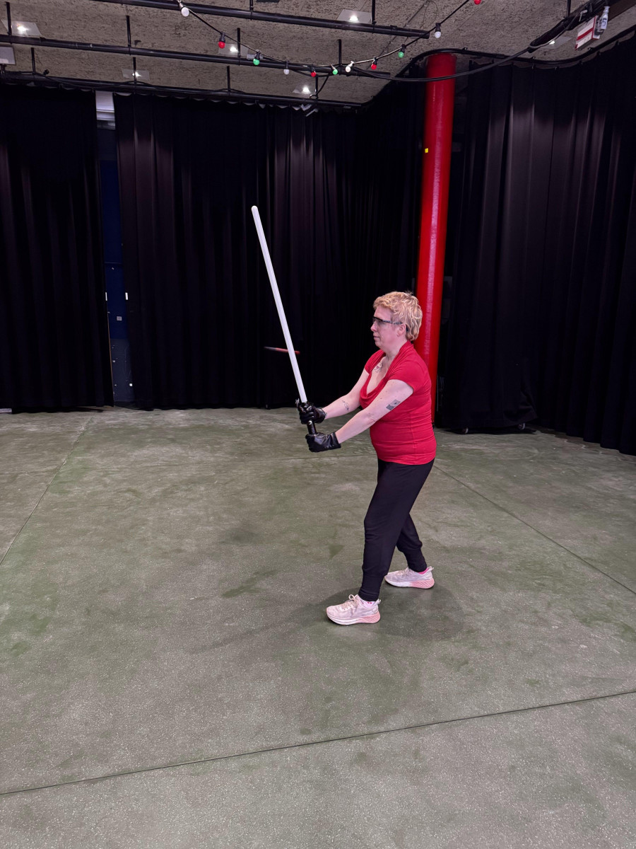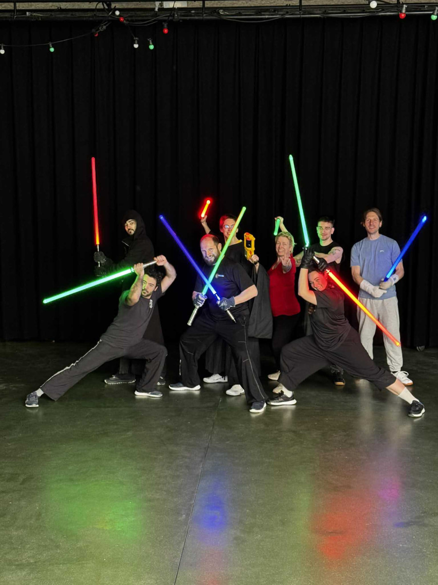 Nous avons exploré les formes III et IV du sabre laser. En forme III, nous avons pratiqué des moulinets défensifs et tenté de nous protéger contre des tirs de lasers. La forme 4 a mis à l'épreuve nos jambes et notre explosivité, pour des acrobaties de plus en plus spectaculaires.
