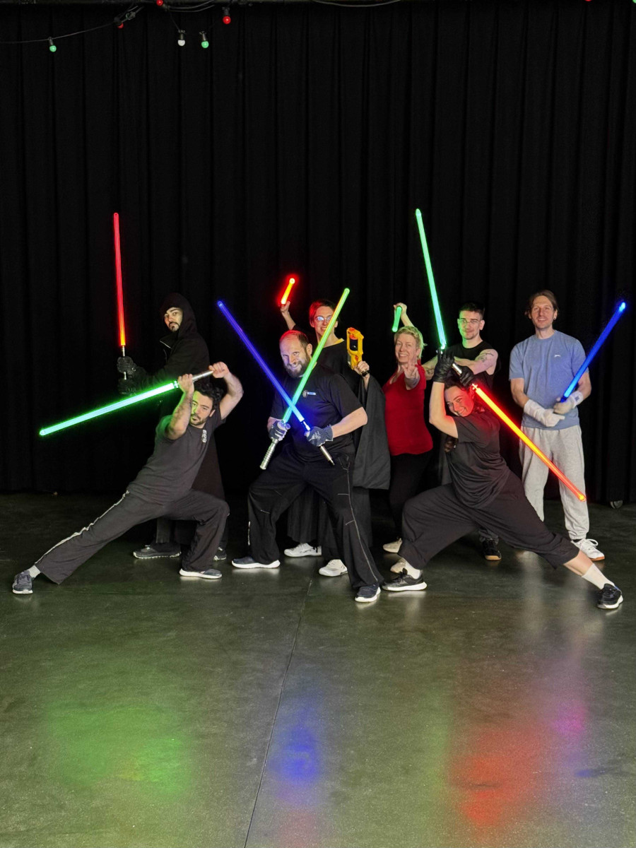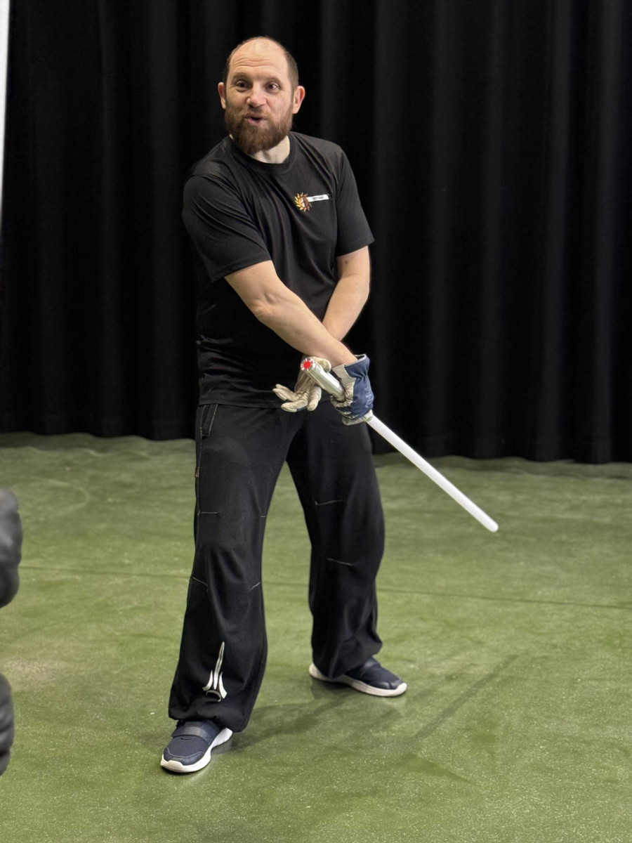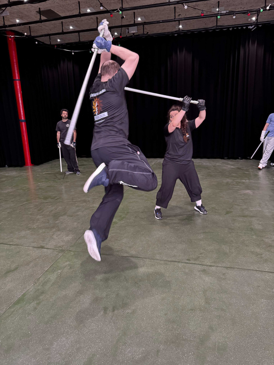 Nous avons exploré les formes III et IV du sabre laser. En forme III, nous avons pratiqué des moulinets défensifs et tenté de nous protéger contre des tirs de lasers. La forme 4 a mis à l'épreuve nos jambes et notre explosivité, pour des acrobaties de plus en plus spectaculaires.